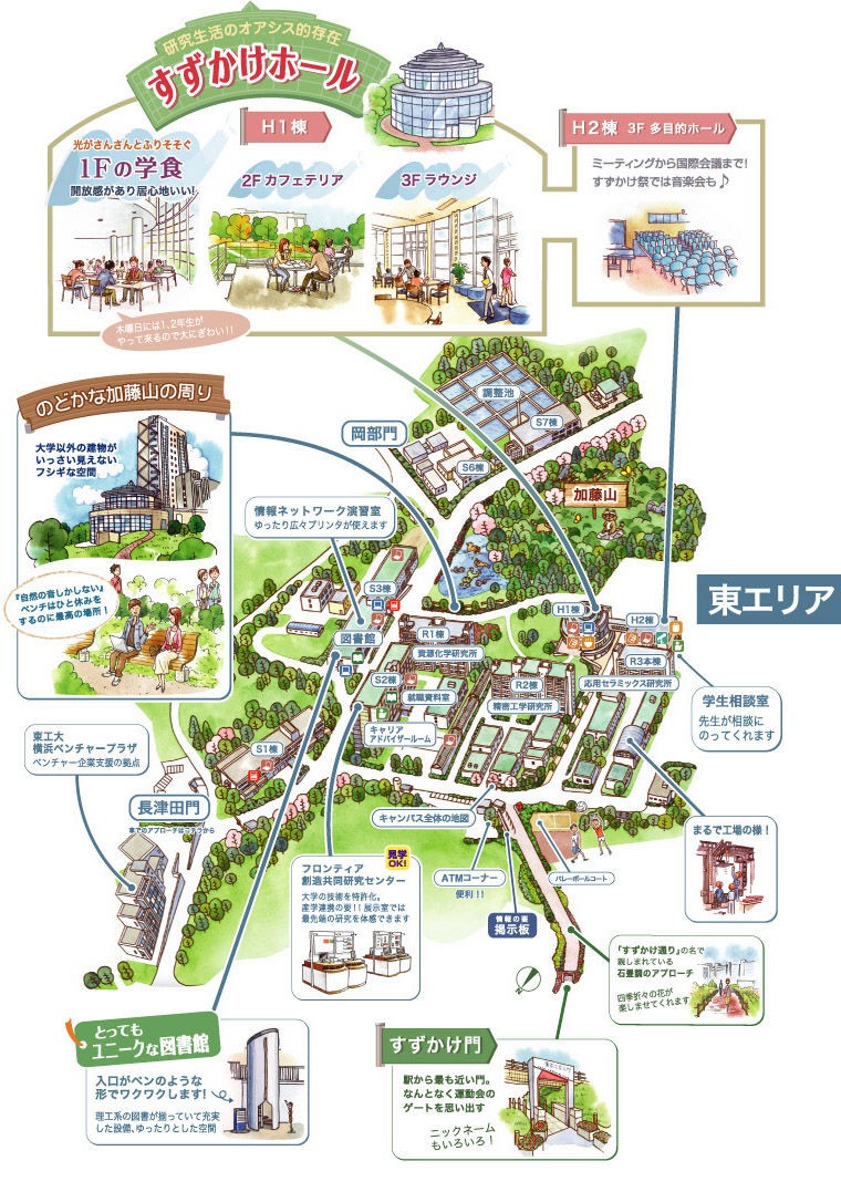 学校似乎很好,到处都有无线上网的地方,各种设施都很不错的样子。在google map上量了一下,すずかけ台駅到すずかけ門的距离是750m(すずかけ門到研究室的距离忽略…),而三号门到9舍的距离是1850m…原来我每次都走过那么长的距离啊…