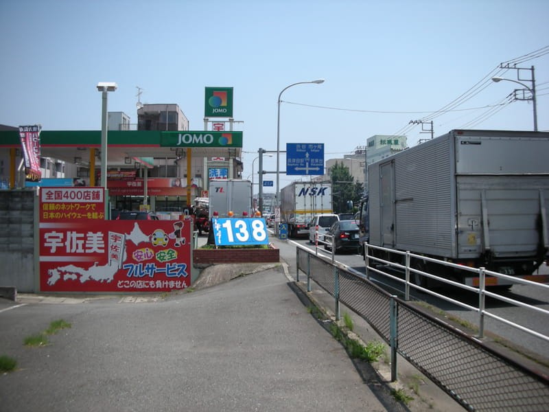 这张是去超市的路上拍的,这是一个加油站,旁边是日本的一个国道,可以看到,这个国道通往涩谷(路牌上向上的箭头写的是渋谷)。日本的国土真的是很狭小,国道也那么窄。