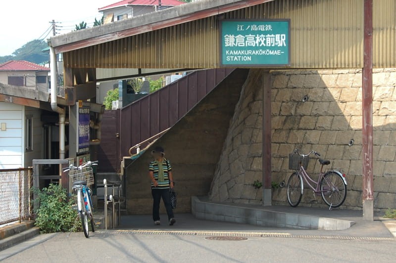 前段时间才去过鎌倉,而恰好又在鎌倉高校前駅拍了一张照片,翻出来一看,十分惊讶。原画作者应该就是在这里画的MO吧,连自行车的位置都很相似……
