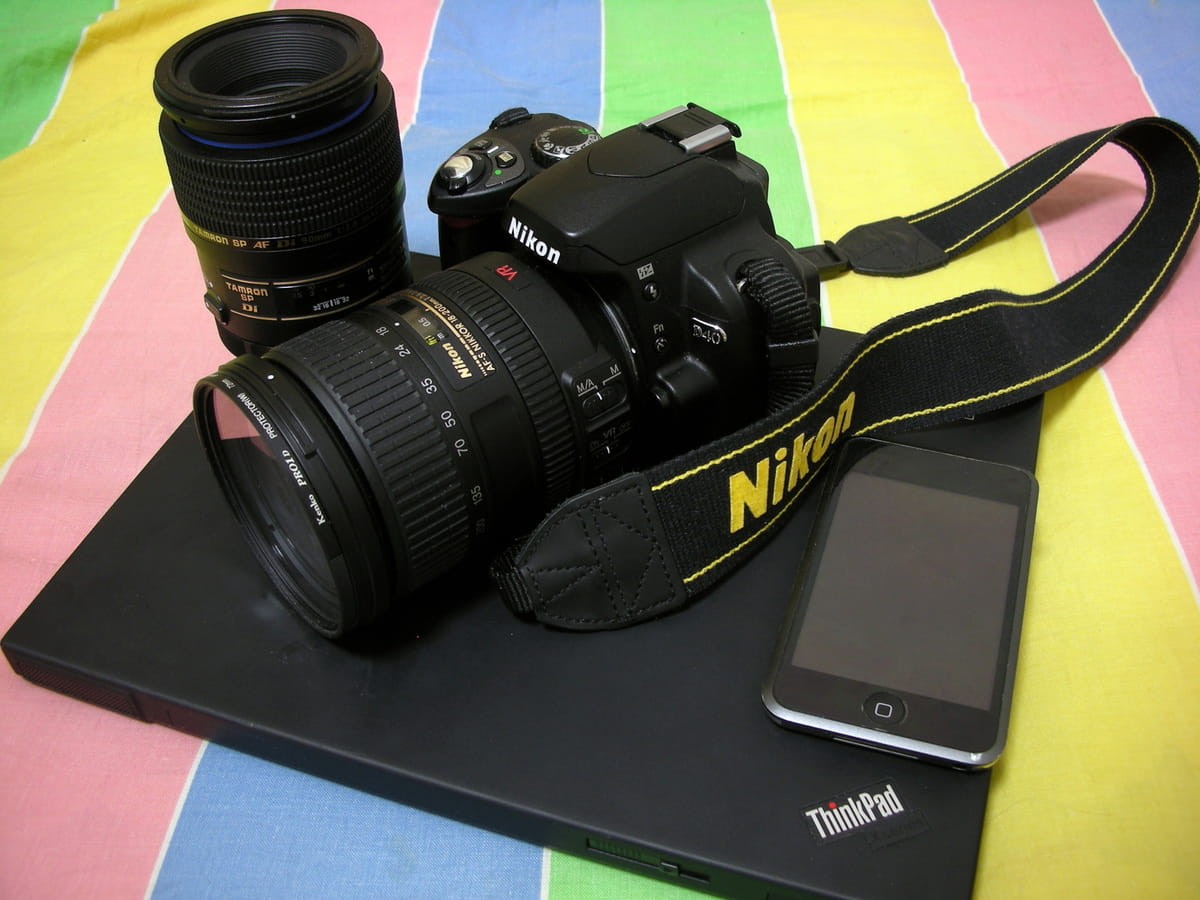 最后是单反相机,大家平时看到的照片就是用它拍的(当然这张不是……)。机身是D40。当初选它的原因是第一便宜,第二看中了它高ISO控制噪点的优秀表现。ISO是感光度,使用较高感光度在暗光下拍摄时可以获得更快的快门,简单说来ISO是最为有效的防抖,但是ISO过高会产生色斑一样的噪点(Noise),在高ISO下能否良好的控制噪点也是比较相机的一个标准。D40是最低的入门机,不过不要因为它是入门机就瞧不起它,因为机身性能低不代表成像质量差,而是差在操作性,快速切换模式,调节ISO以及连拍性能等等。成像的好坏有很大一部分取决于镜头。