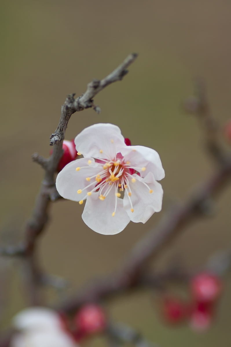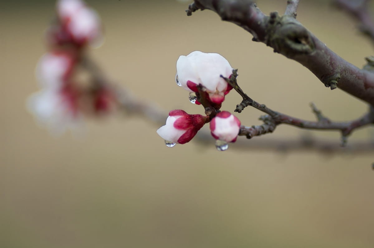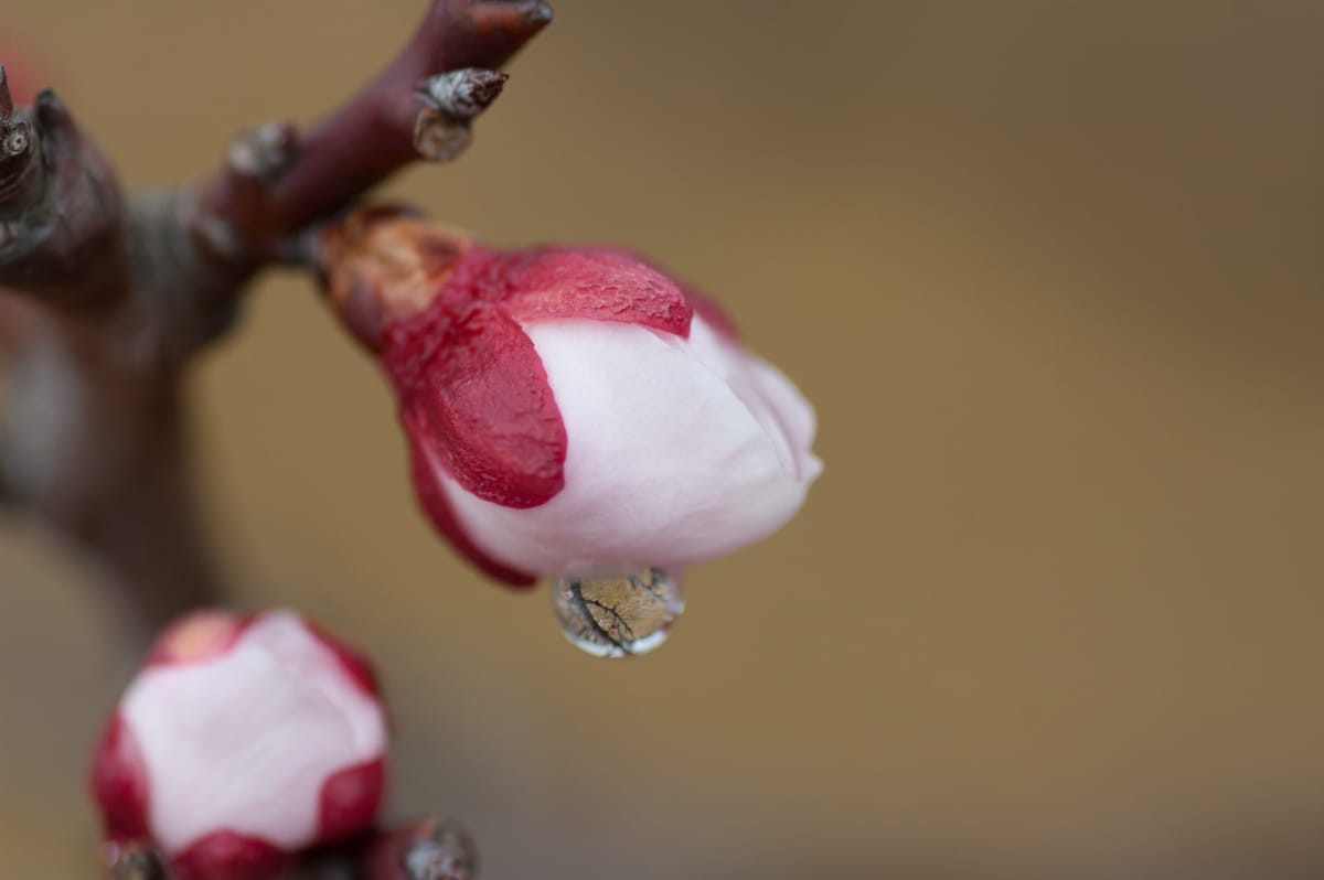 终于,雨停后的一个下午,我还是拿着相机出去拍了。果然微距美……含苞欲放的梅花。