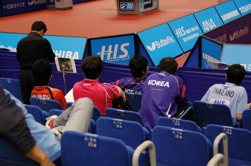 大概到了下午3点,韩国队到场了,就坐在我前面,可惜厉害点的人物比如柳承敏都没出现。