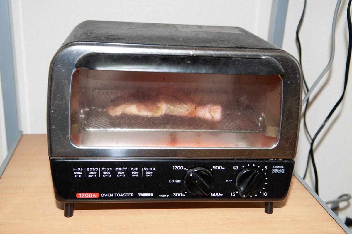直接放到烤箱里烤,注意,这里的做法是错误的,一定要放托盘,不然油滴下去会冒火……