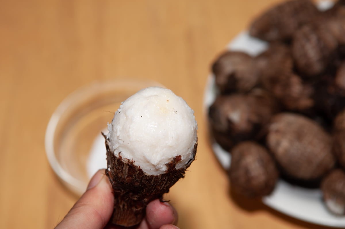 今天又碰上了好运,100日元买了这么一堆芋头,国内8块钱也买不到这么多吧。