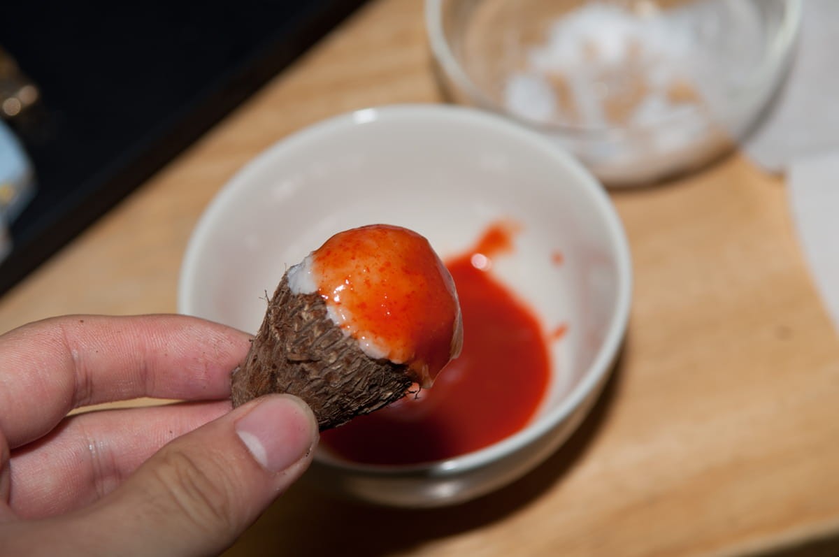 我妈说吃糖多了不好,于是就改蘸辣椒酱,味道也相当的好。