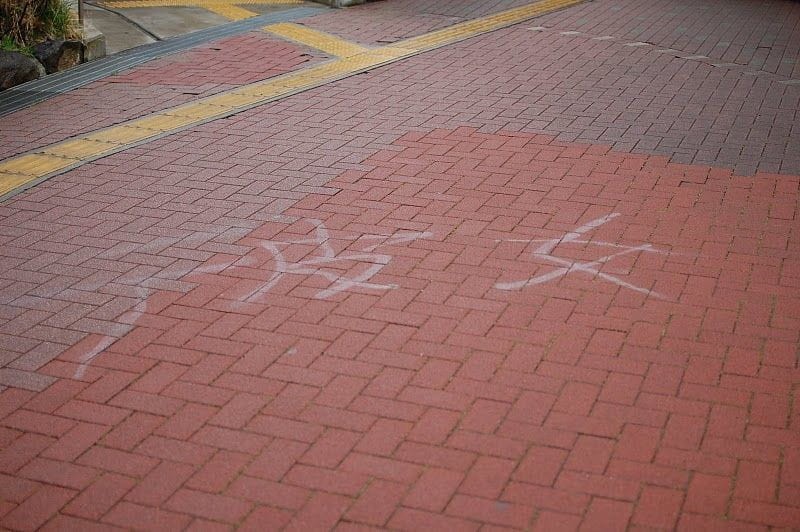 去年4月1号,撑着伞走过车站前广场,发现了地上的字。