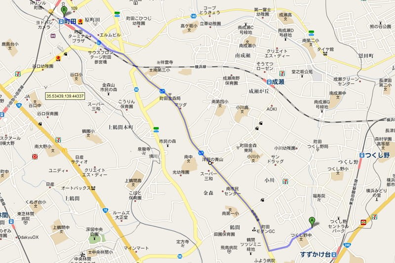 现在有时间就骑车子沿着町田街道去町田车站附近转。单程大约4.5km,骑车子大约20min。