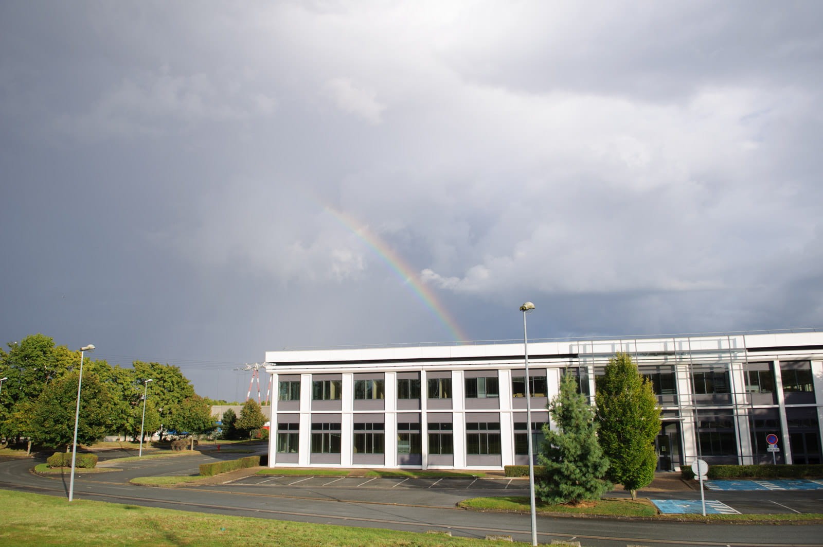 今天下了一天的雨,从实验室出来的时候发现天空中架着两道彩虹,其中一道横跨天际两边都看得清楚……第一次见到这么壮观的彩虹。